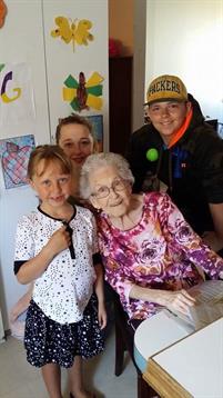 Heather and her Family visiting Grandma Elda.